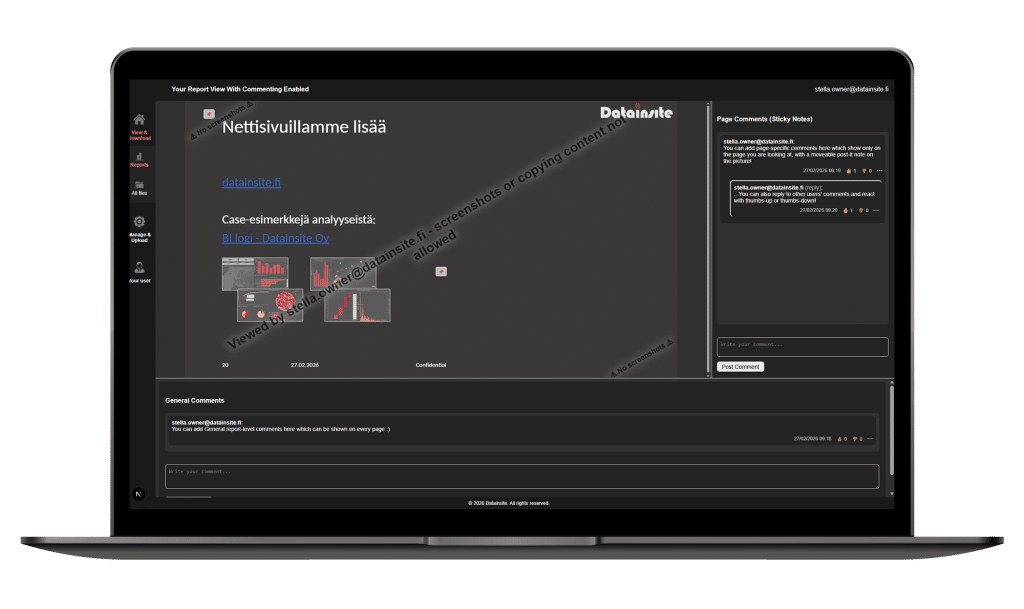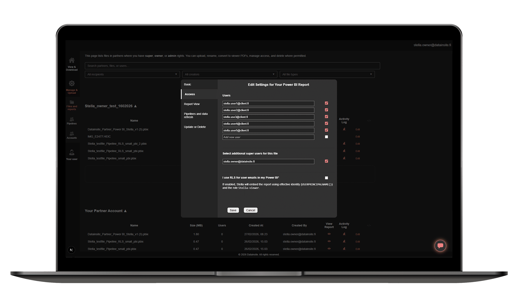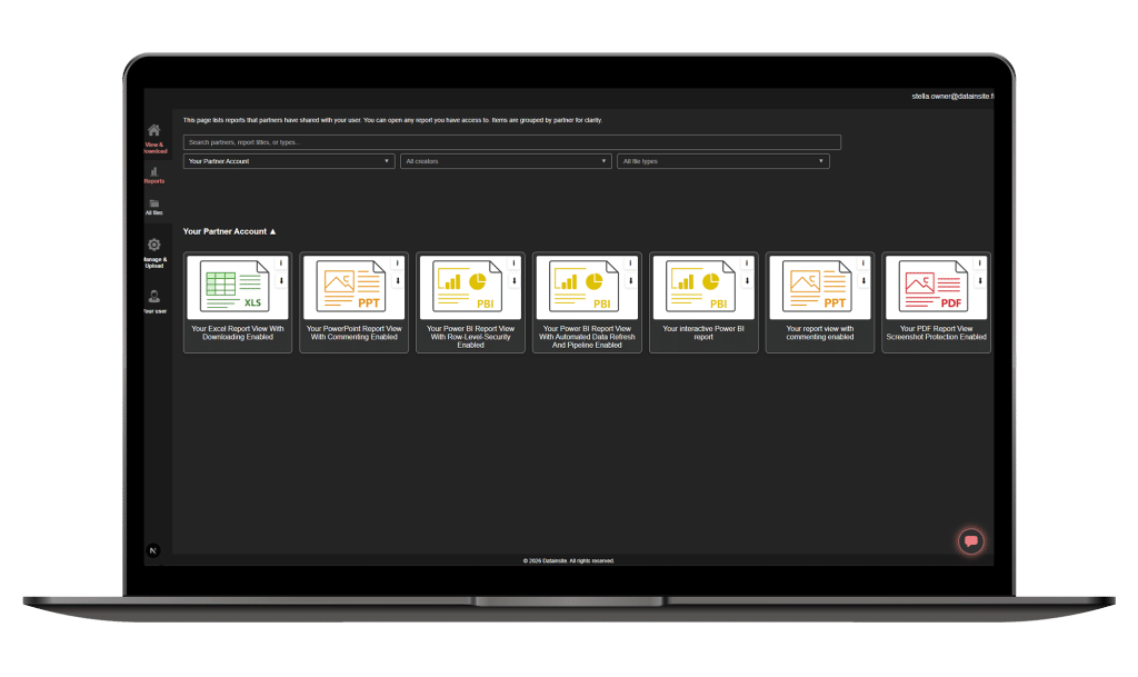 Mit Stella können interaktive Berichte und Visualisierungen geteilt werden, ohne Rohdaten zu verteilen oder separate Zugriffe in Reporting-Tools zu verwalten. Power BI Reports lassen sich direkt in Stella öffnen und nutzen. So können Anwender mit Dashboards arbeiten, ohne direkten Zugang zum zugrunde liegenden Power BI Workspace zu benötigen.