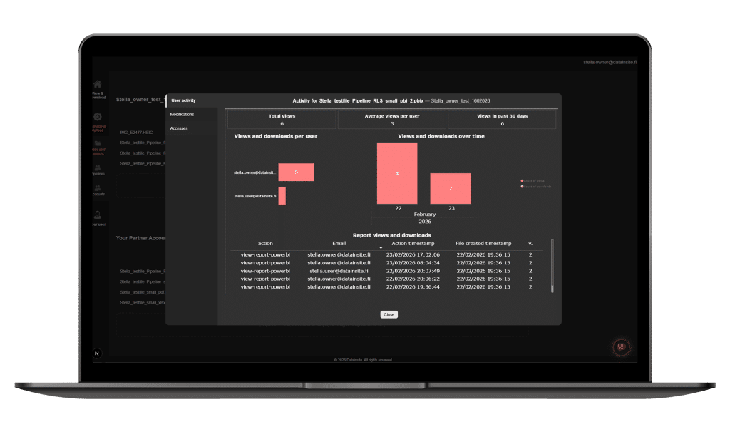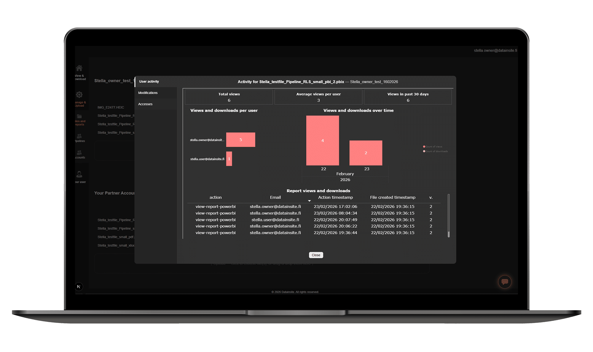Stella bietet volle Transparenz darüber, wie Dateien genutzt werden. Ansichten, Downloads, Bearbeitungen und Berechtigungsänderungen werden für jedes Dokument protokolliert. So entsteht eine klare Audit-Spur. Diese gemeinsame Transparenz unterstützt Verantwortlichkeit und Vertrauen beim Austausch sensibler Informationen zwischen Organisationen.